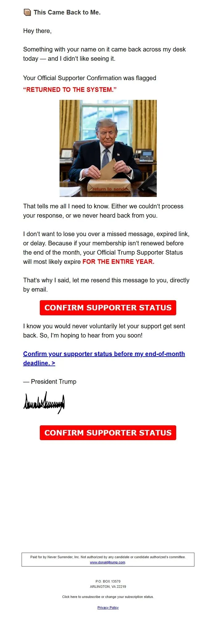 Got this email...Dang, my status as a Trump supporter is gonna expire...