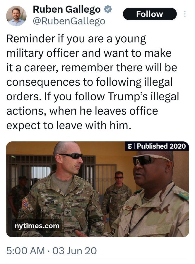 And thats the real point of the seditious 6 video. Stochastic terrorism. Publish innuendo and assertions that what the military is doing "may" be illegal, smear them with association with Trump.