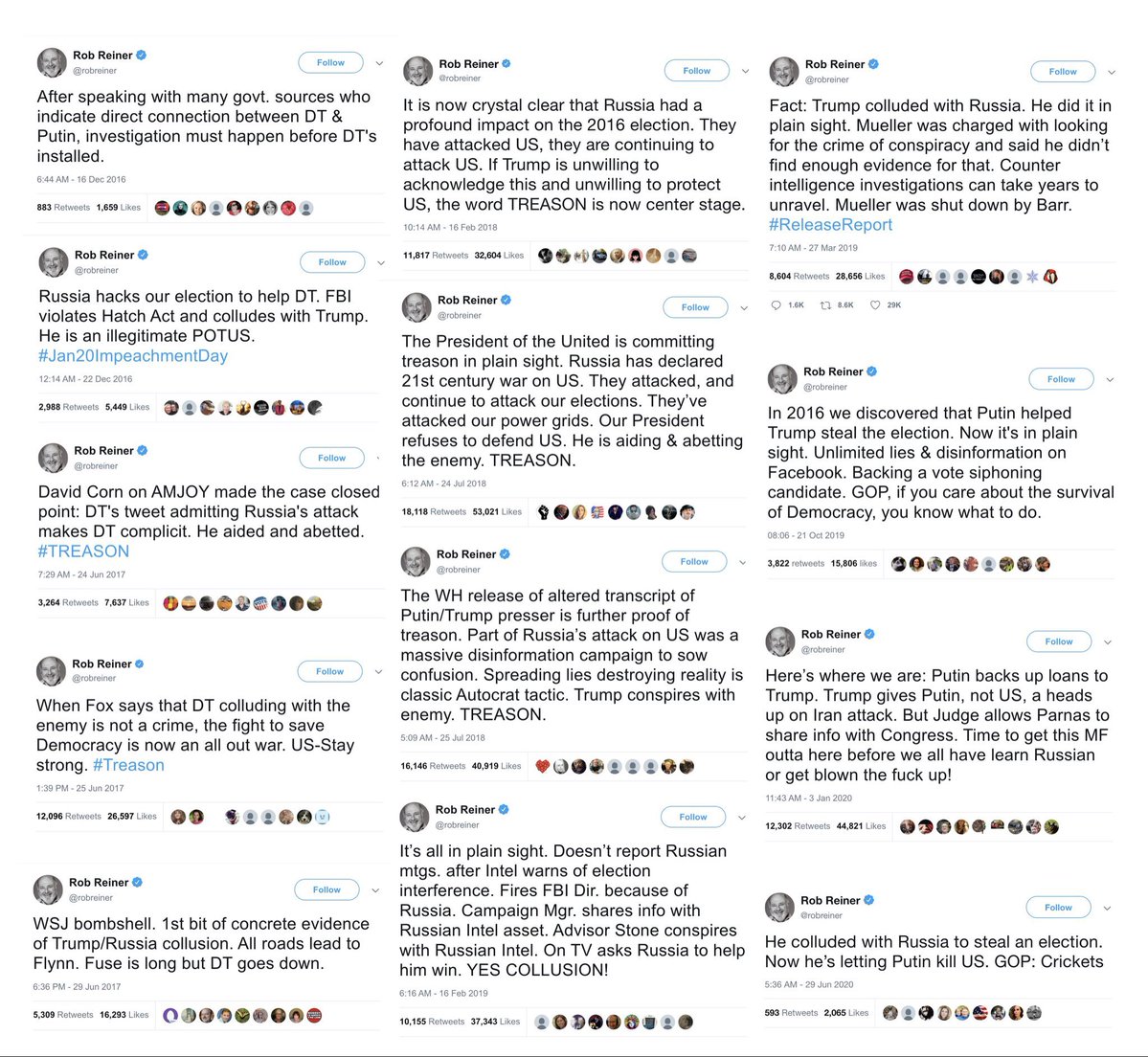 As a thought experiment, do any of you think if Trump was murdered by Don jr, that Reiner wouldn't be shit posting?